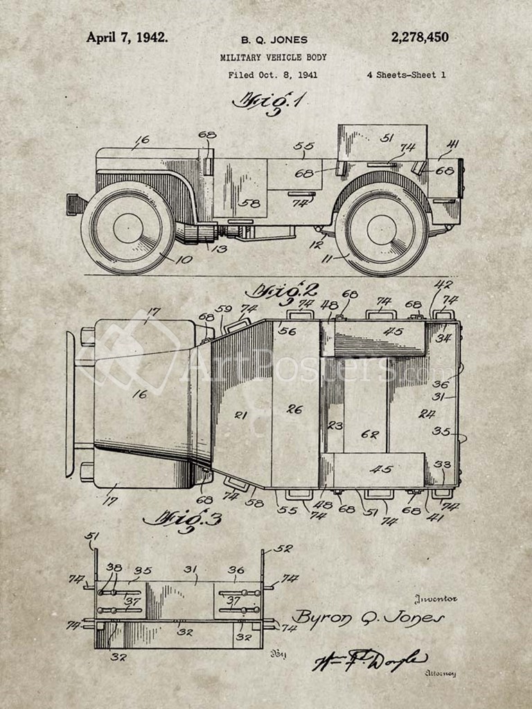 Military Vehicle Body Patent - Sandstone by Cole Borders art print