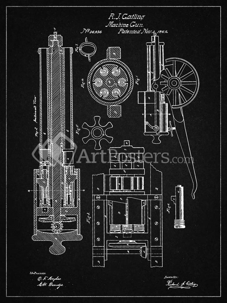 Machine Gun Patent - Vintage Black - Cole Borders