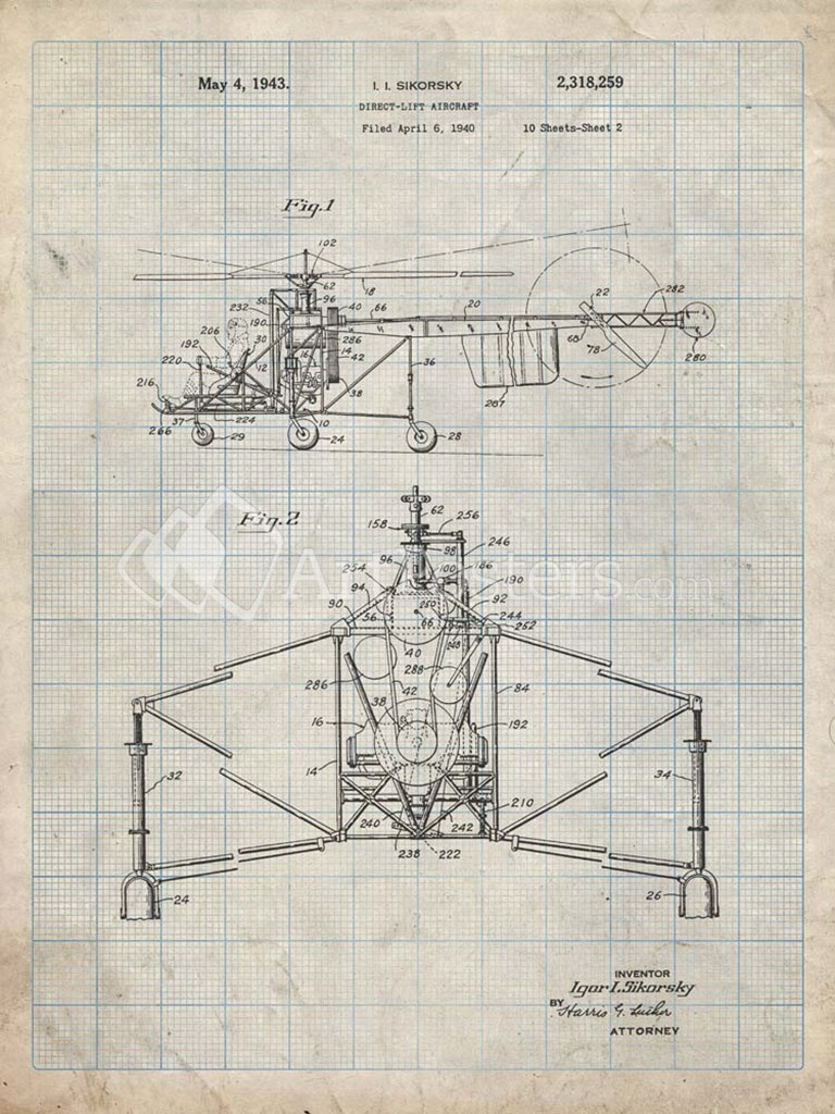 Direct-Lift Aircraft Patent - Antique Grid Parchment - Cole Borders