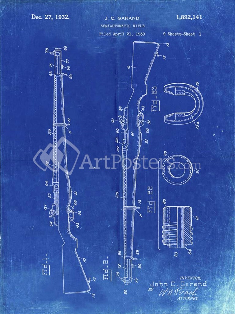 Semi-Automatic Rifle Patent - Faded Blueprint - Cole Borders