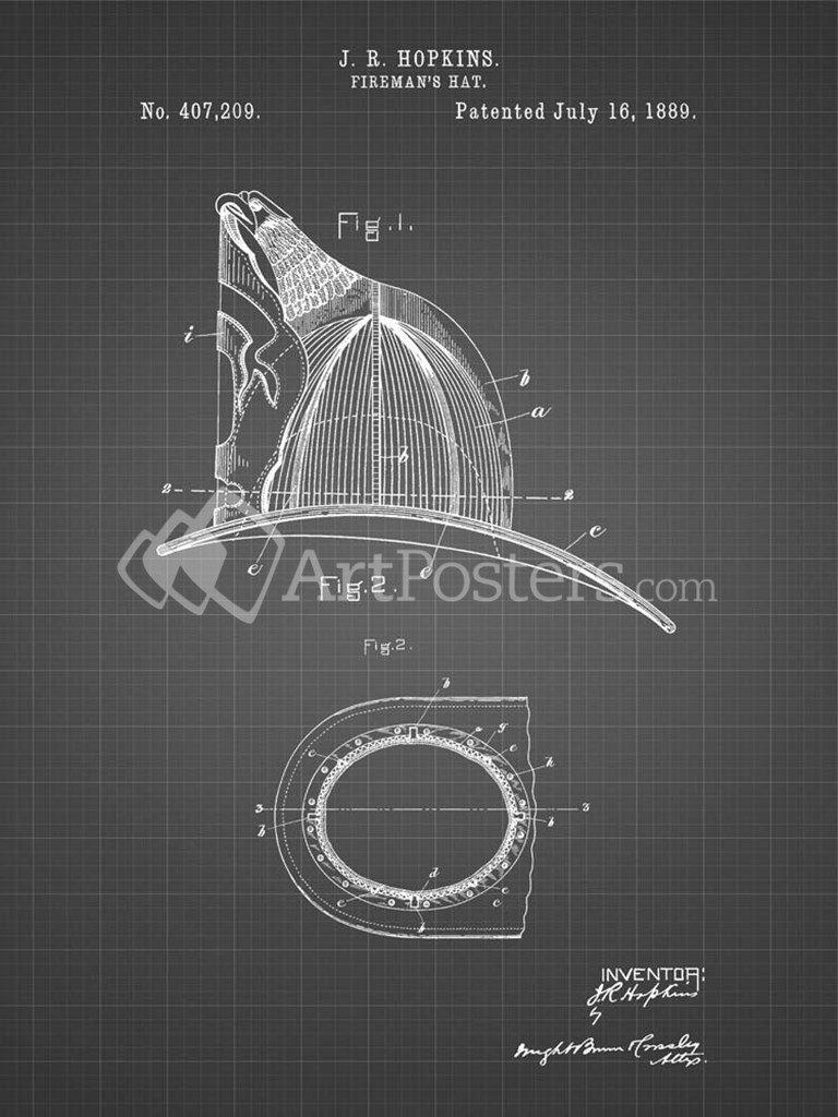 Title: Fireman's Hat Patent - Black Grid