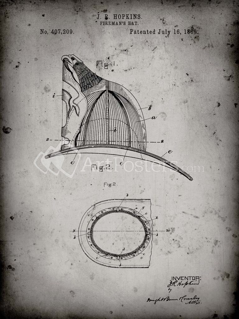 Title: Fireman's Hat Patent - Faded Grey