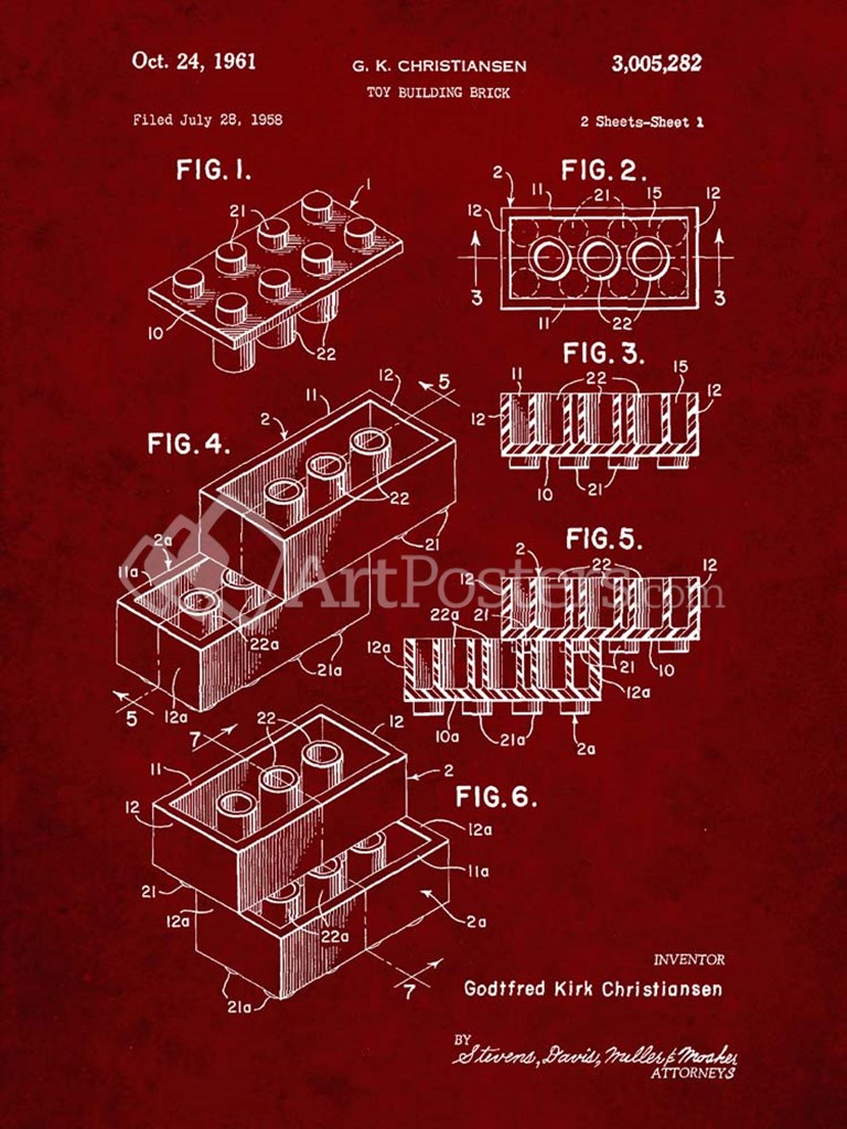 Toy Building Brick Patent - Burgundy - Cole Borders