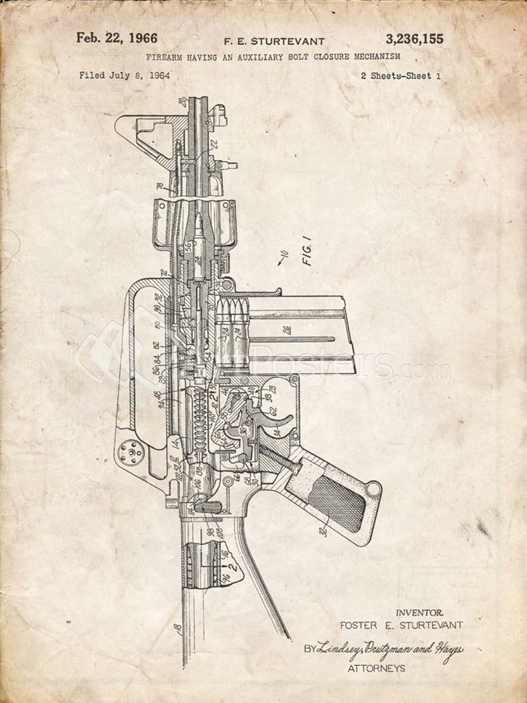 Firearm With Auxiliary Bolt Closure Mechanism Patent - Vintage Parchment by Cole Borders art print