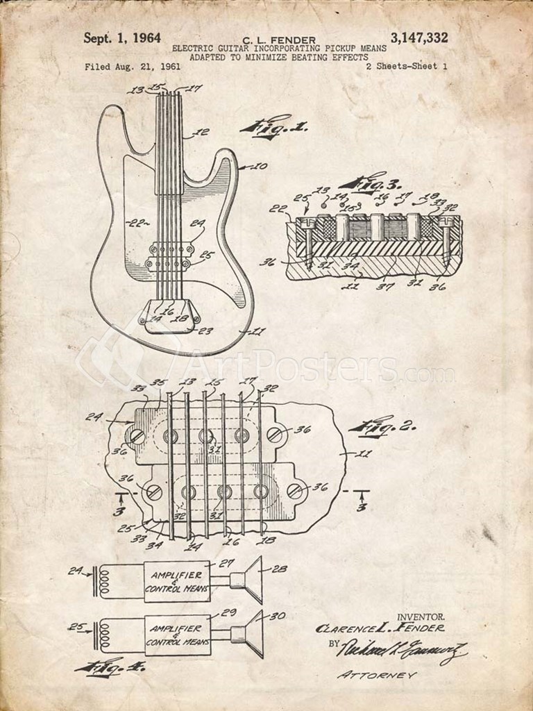 Title: Electric Guitar Patent - Vintage Parchment