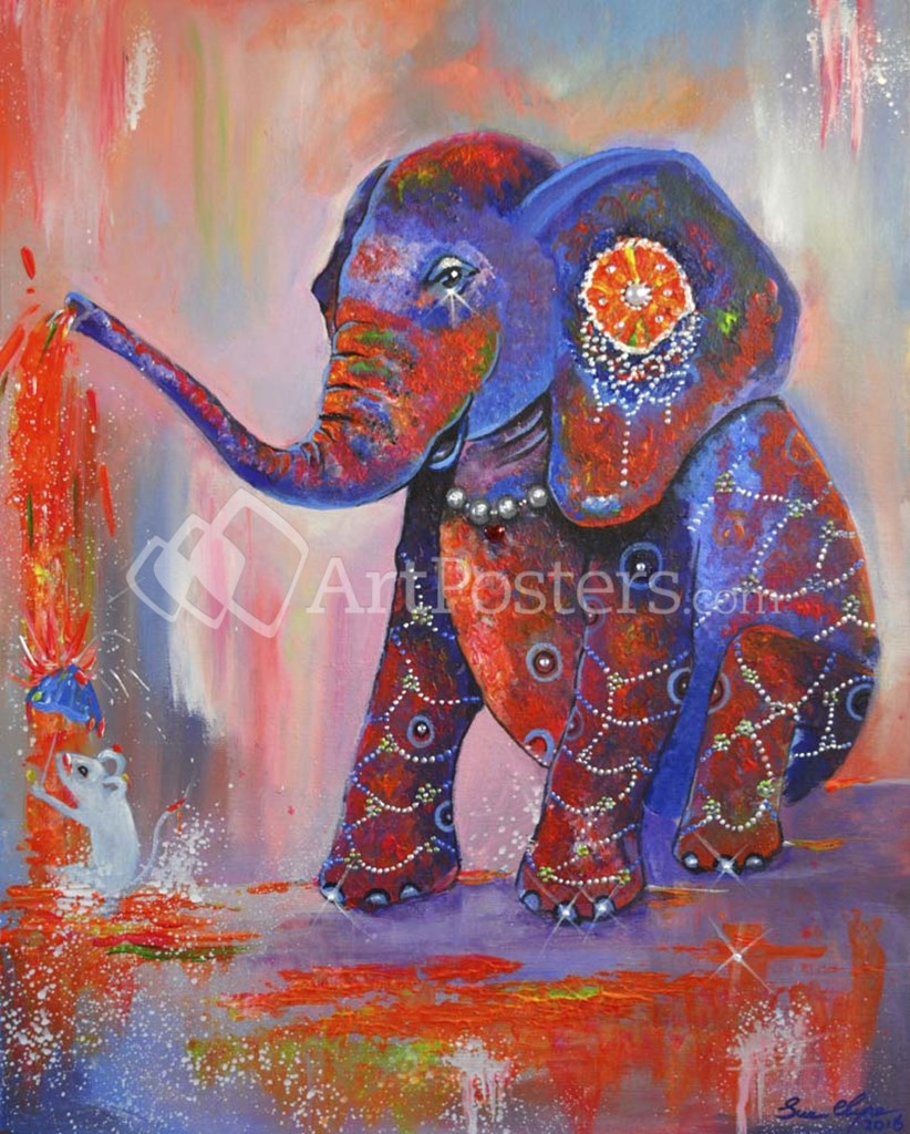 Elephant Festival Colour by Sue Clyne art print