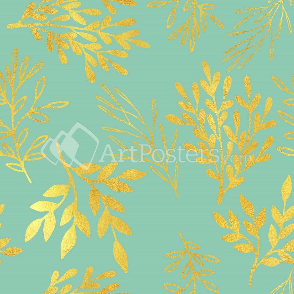 Golden Leaves Pattern Aquamarine - Tina Lavoie