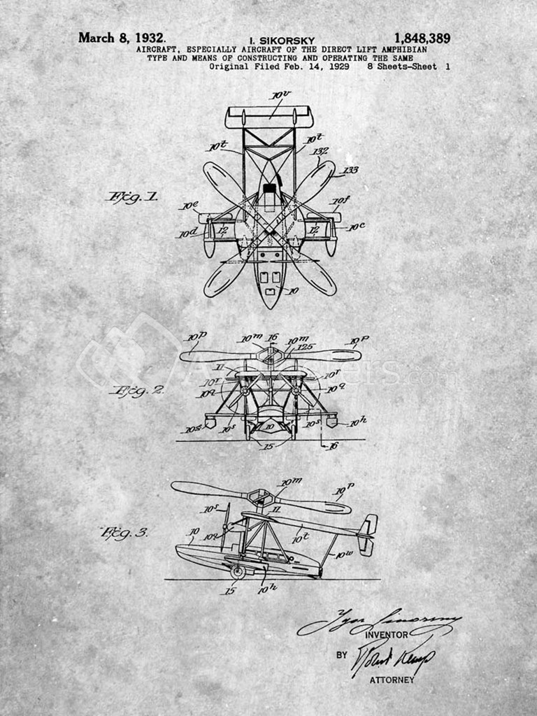 Aircraft of the Direct Lift Amphibian Type Patent by Cole Borders art print