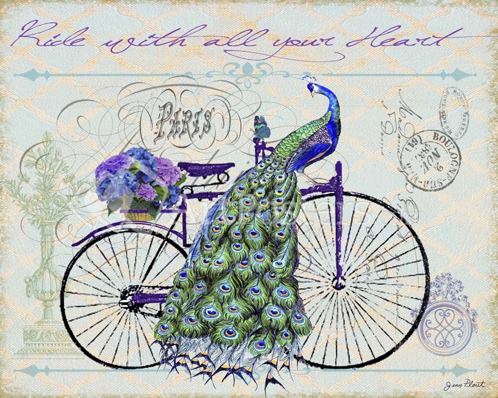 Peacock On Bicylce III by Jean Plout art print