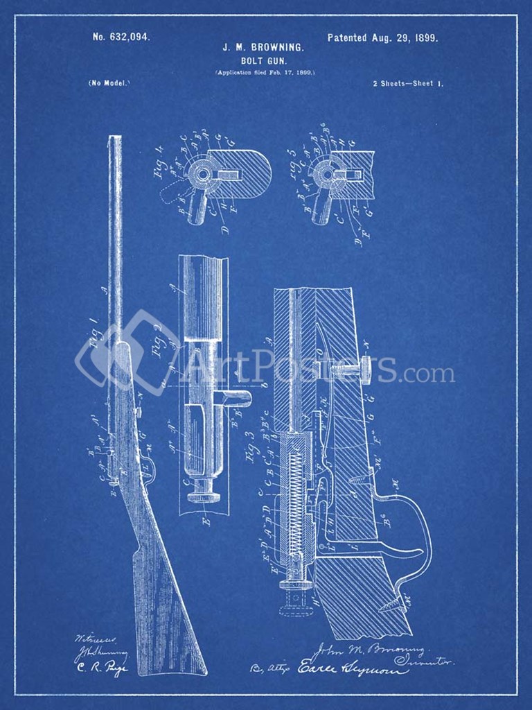 Title: Blueprint Browning Bolt Action Gun Patent