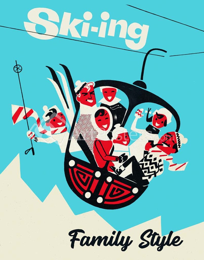 Skiing Family Style by Vintage Lavoie art print