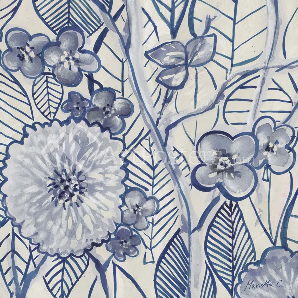 Indigo Leaves And Florals 2 by Marietta Cohen art print