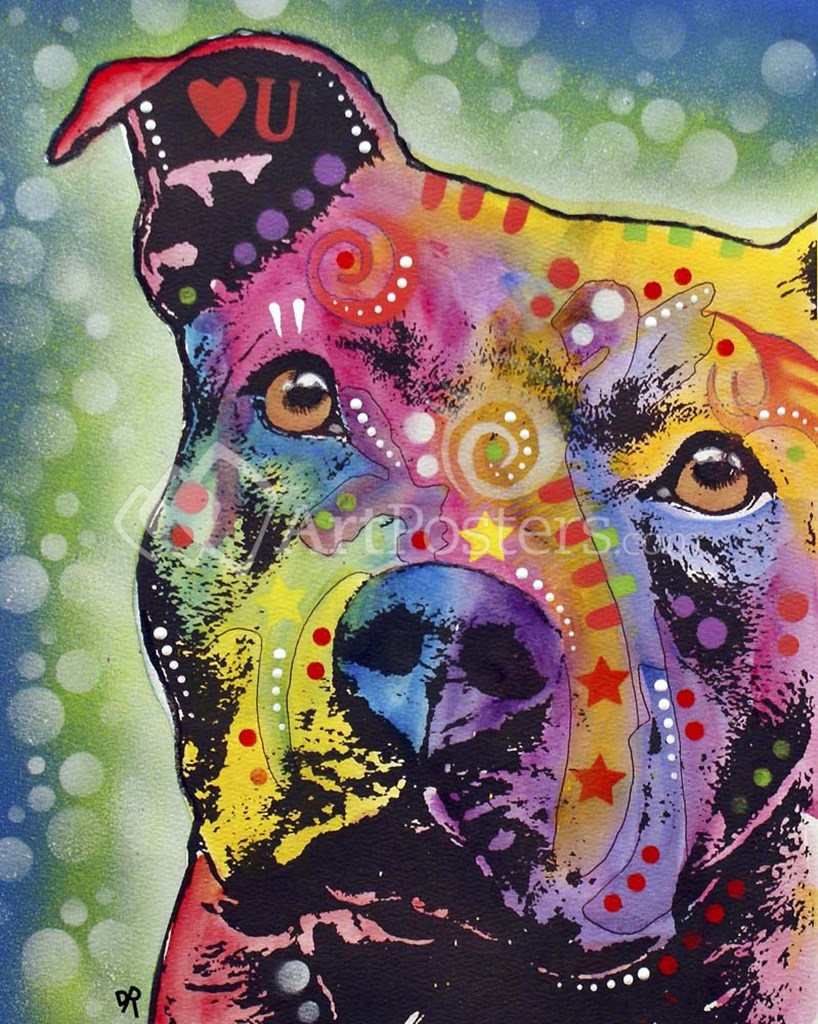 Thoughtful Pit Bull White Bubble by Dean Russo art print